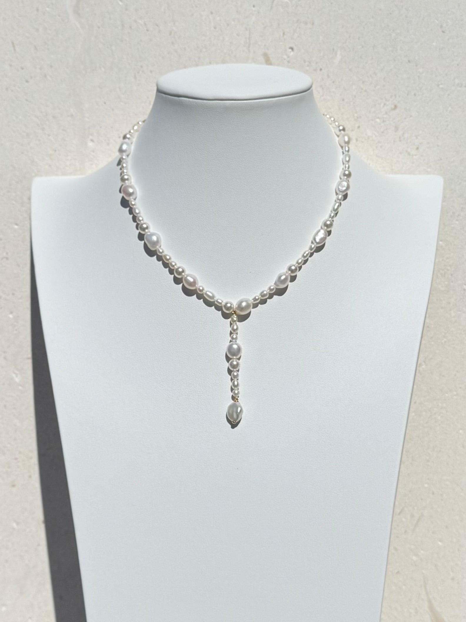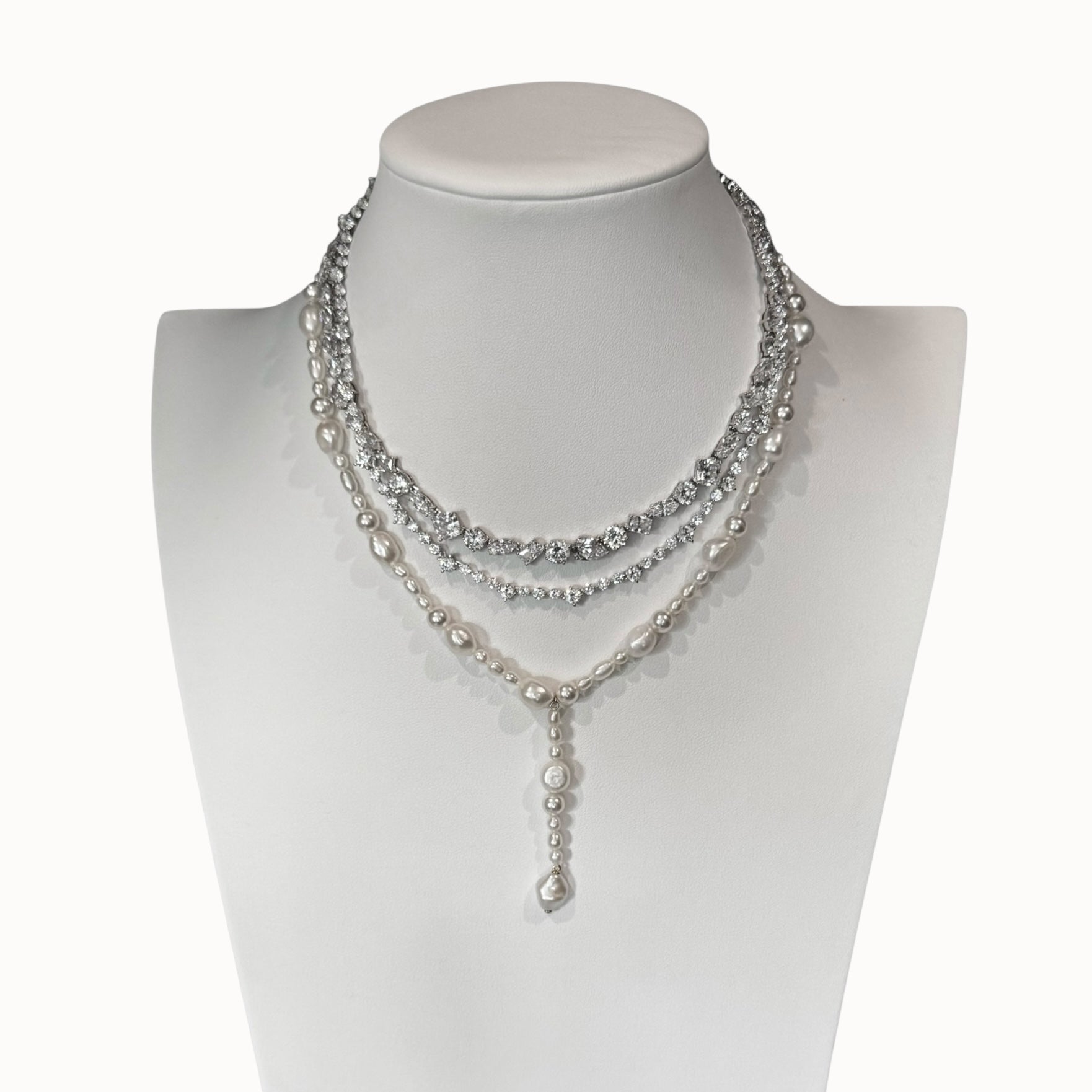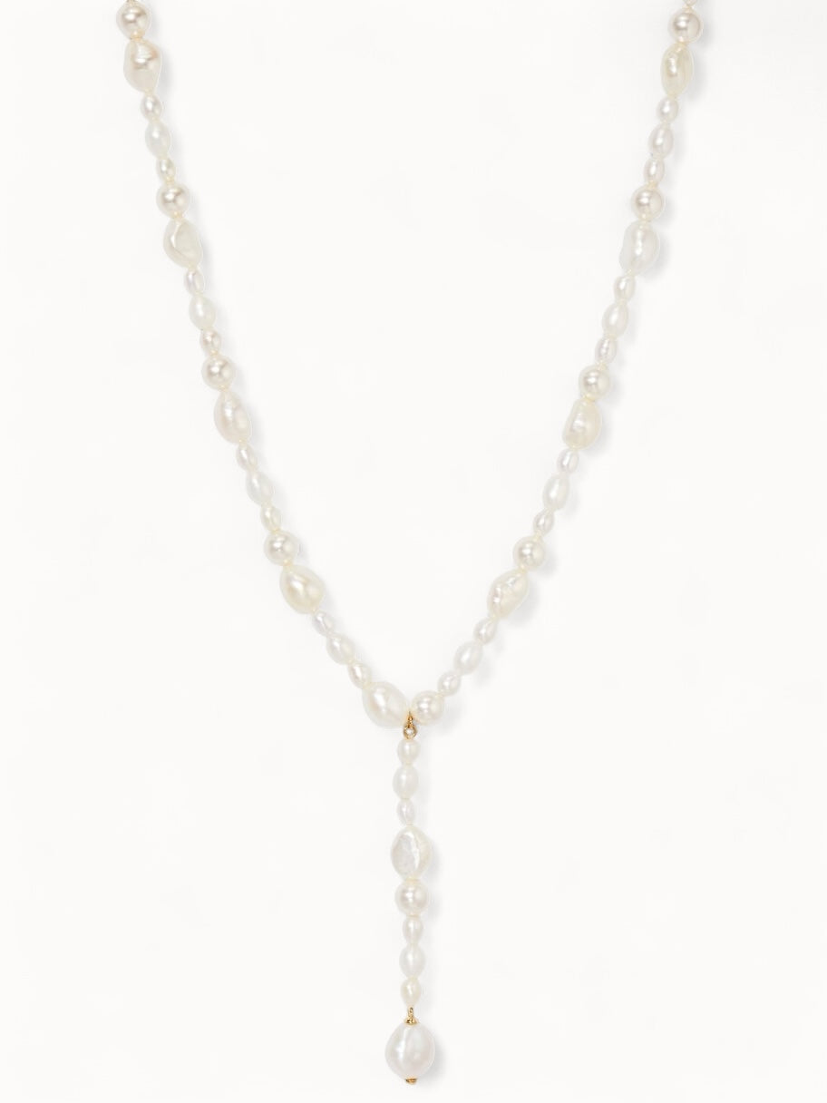 The Olivia arranges freshwater baroque pearls to combine a modern silhouette with timeless elegance. Crafted in sterling silver, this striking piece features a unique freshwater pearl drop, ideal for making a bold statement as a bridal accessory or adding drama to any outfit.