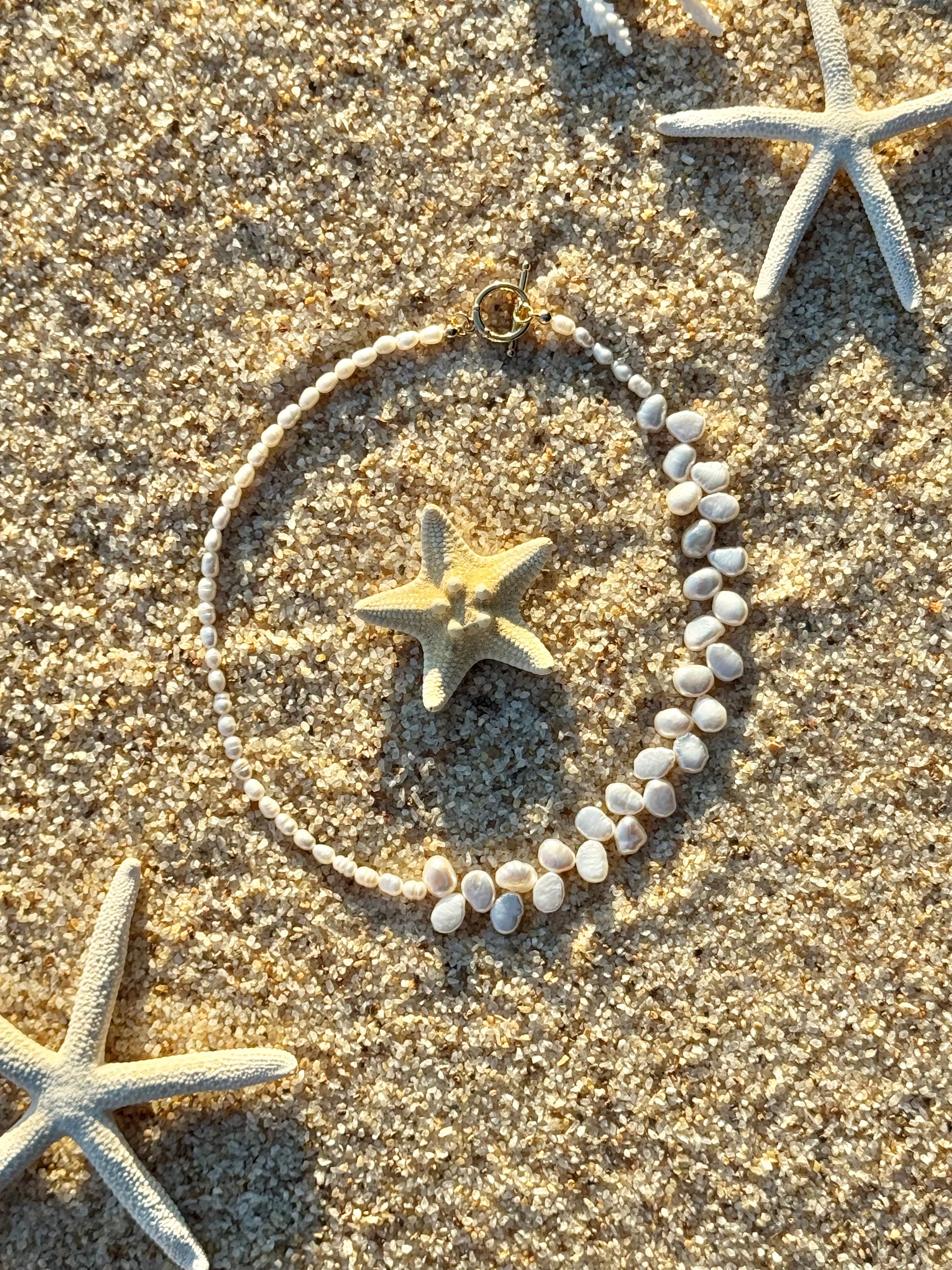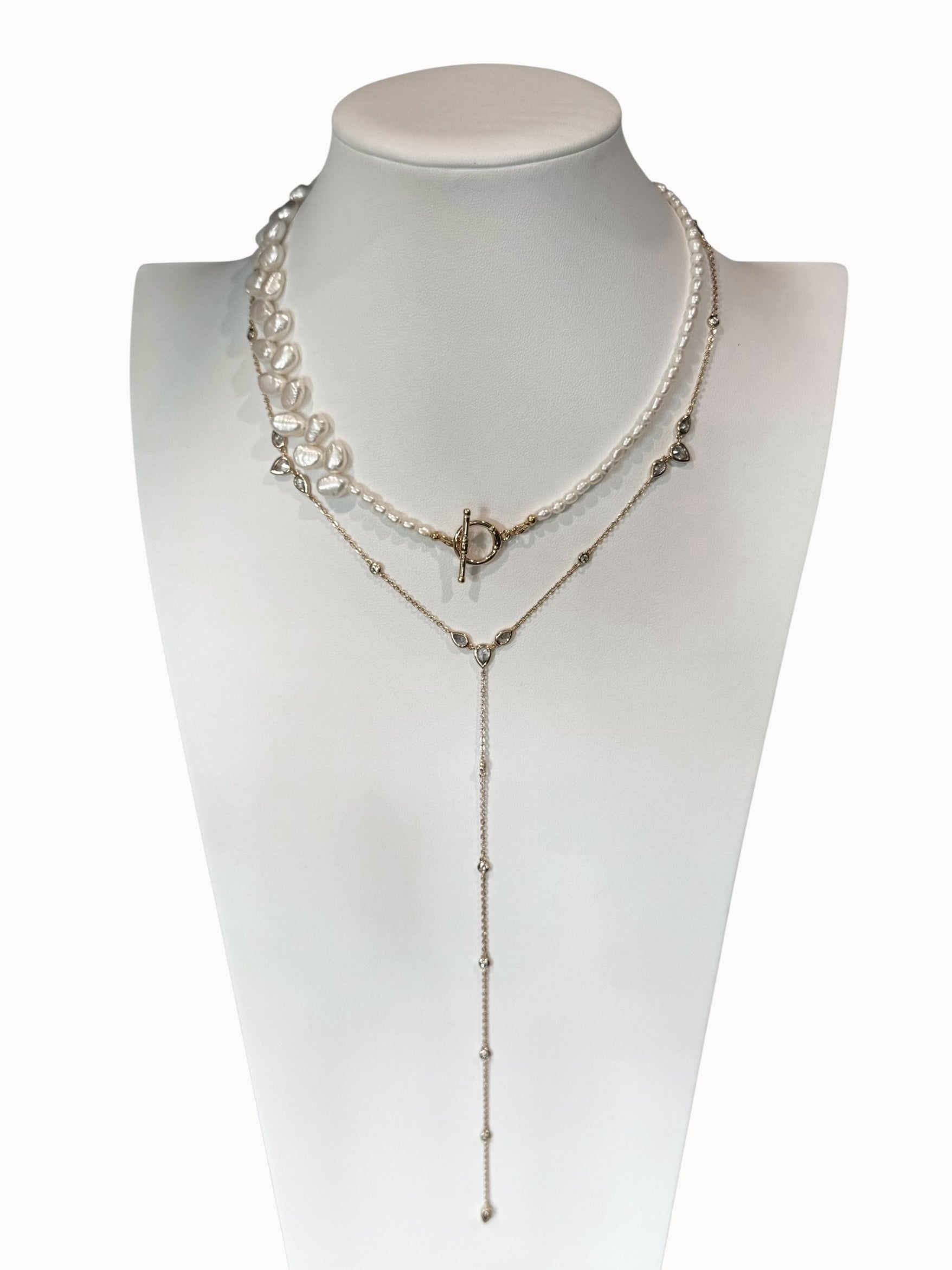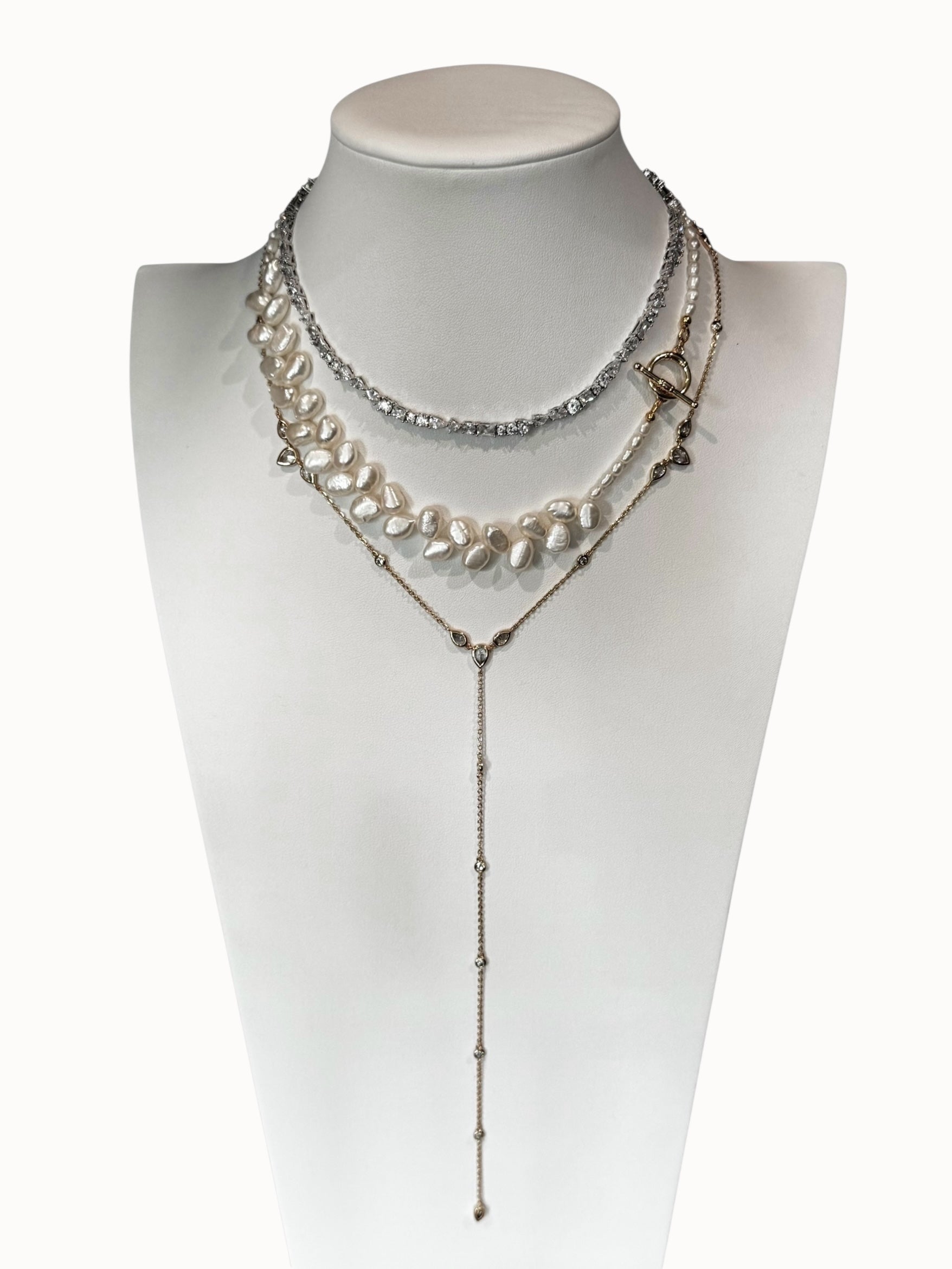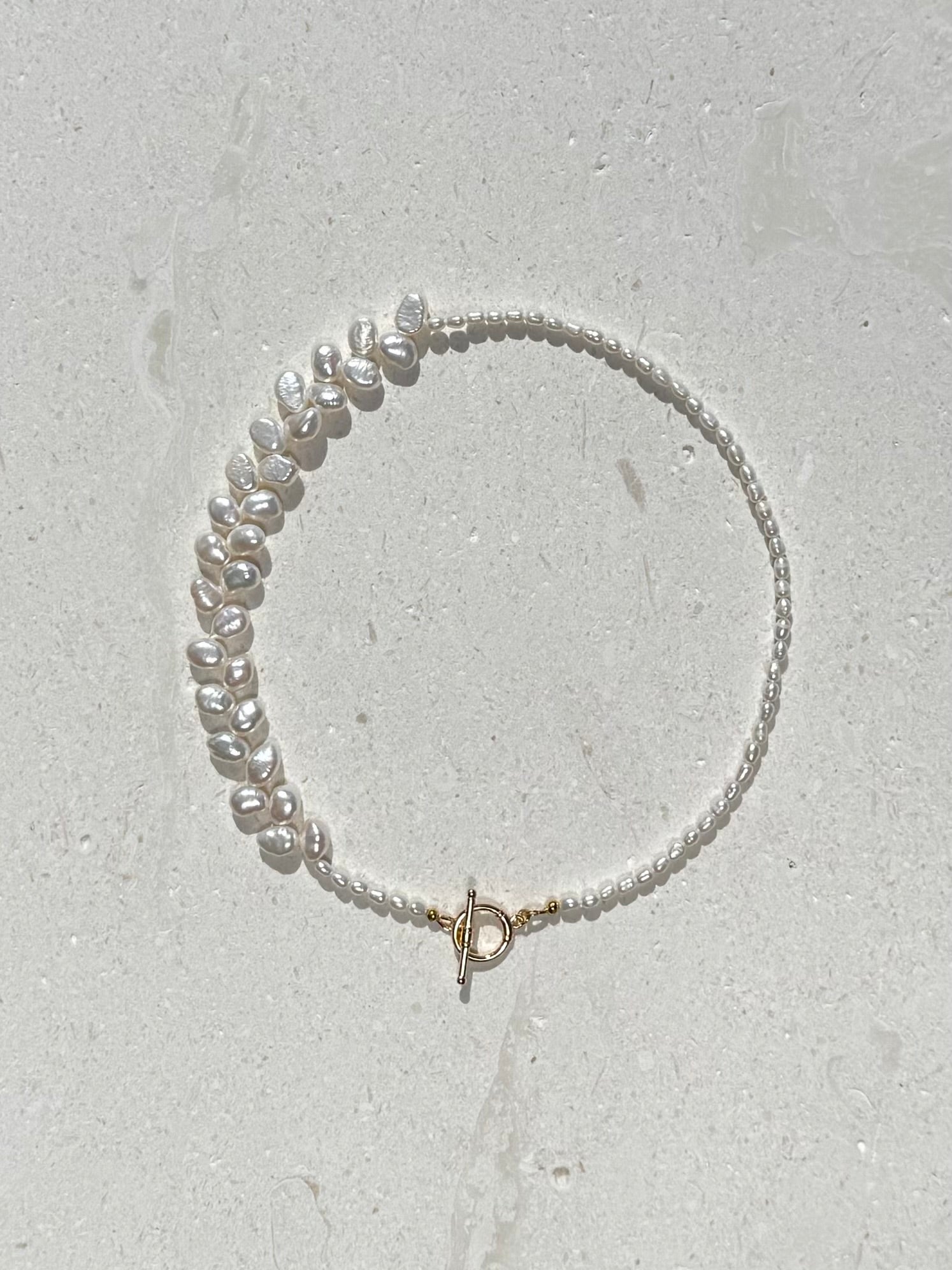 A tribute to timeless elegance, the Vairéa exudes sophistication and feminine allure. A single strand of lustrous freshwater pearls meets a striking herringbone arrangement of baroque pearls at the gold-plated toggle clasp, offering a versatile design that can be worn with the clasp facing down, off to the side or hidden altogether. This classic staple blends basic beauty with sexy charm, perfect as a standalone piece or layered for a bolder statement.